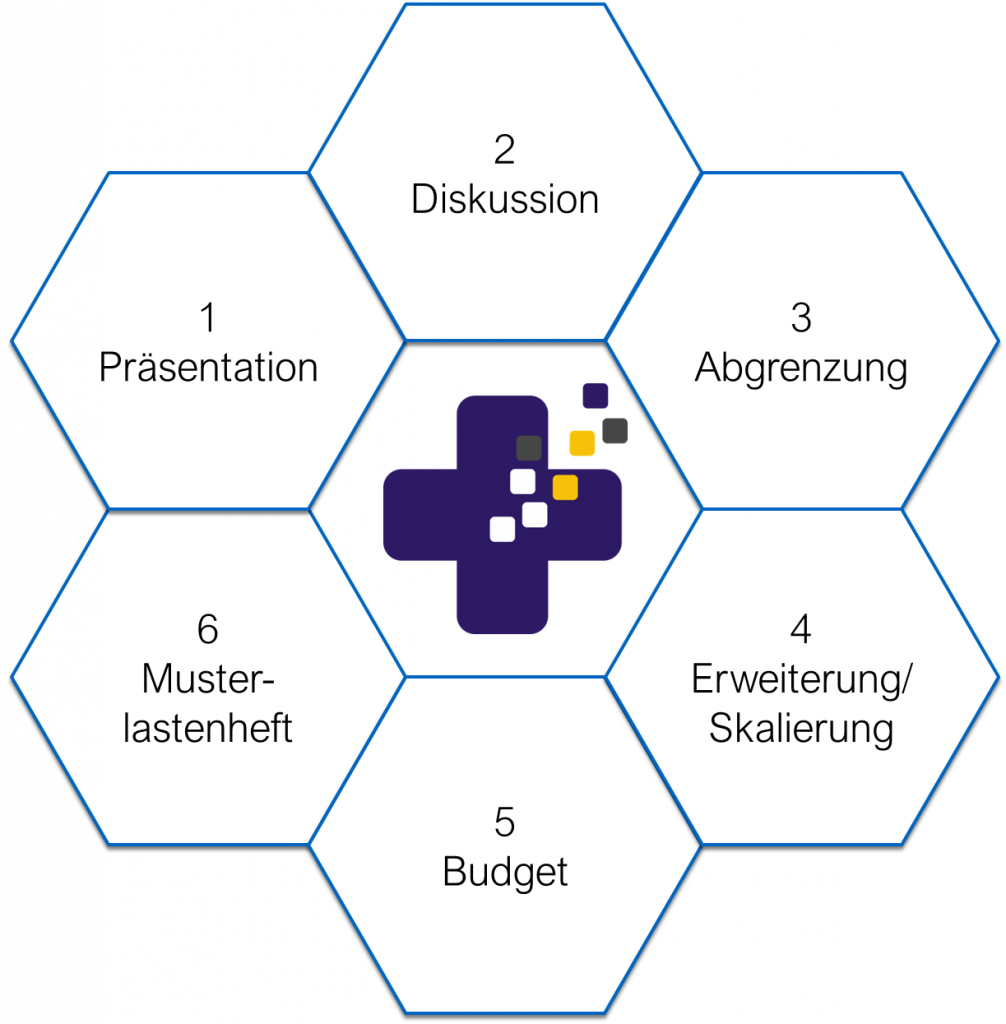 Von der Fragestellung zur konkreten Lösung. Gemeinsam mit Ihnen und unseren Partnern finden wir passende Lösungen und teilen die Ergebnisse mit den Mitgliedern der Hospitalgemeinschaft.